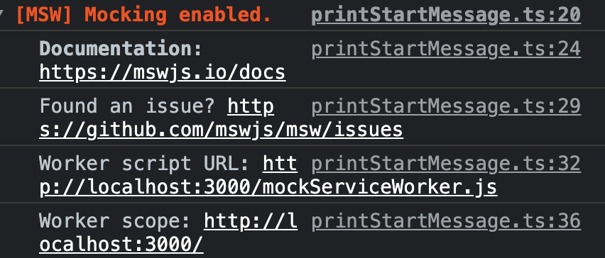 를 통해서 index.tsx에 생성한 mock worker를 불러온다. 그 다음 npm start를 하고, 콘솔을 켜서 확인해본다.